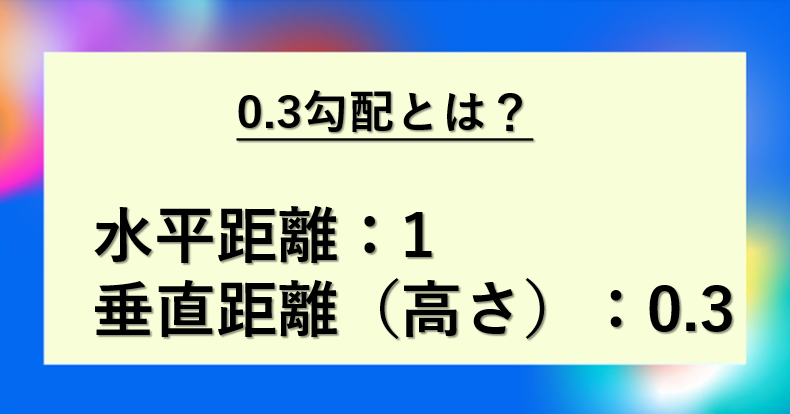 0.3勾配とは「水平距離1に対して垂直距離が0.3」の傾きです!