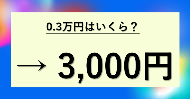 | 0.3万円 | 0.3 → 小数点を4桁右へ → 3,000 | 3,000円 |