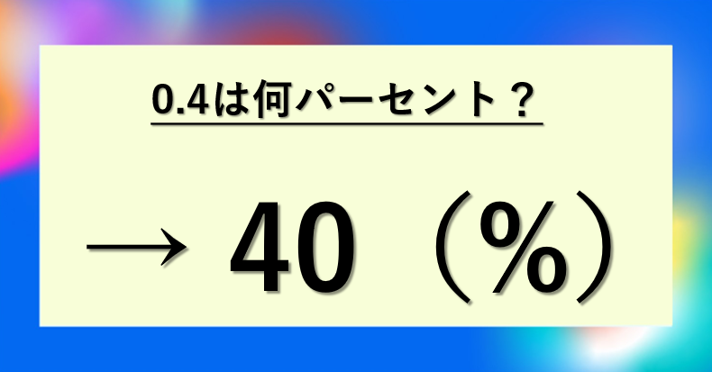 それではまず、0.4が何パーセントになるのかという結論から解説していきます。