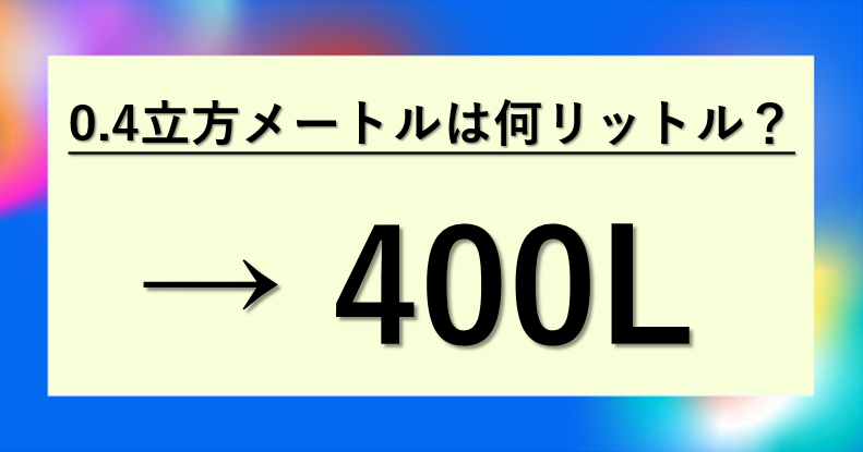 それではまず、0.4立方メートルが何リットルになるのかという結論から解説していきます。