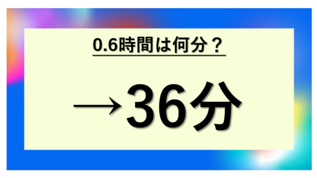 数学・算数・日常の計算 0.6時間は何分?小数の時間を分・秒に変換する計算方法を解説!(36分・0.6分は何秒・単位変換・計算式など) lishazuomu221 everyday-happy-lucky(暫定) 「0.6時間って何分になるの?」「勤怠管理システムに0.6時間って表示されているけど、実際には何分?」「0.6分は何秒?」と、時間の単位変換 …