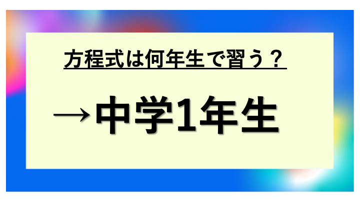 方程式は中学1年生で学習する内容です。文部科学省の学習指導要領では、中学1年生の数学で「文字と式」の単元の後に「一次方程式」が位置づけられています。