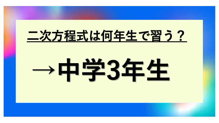 二次方程式は中学3年生で学ぶ単元で、1学期から2学期前半にかけて学習することが多い内容です。